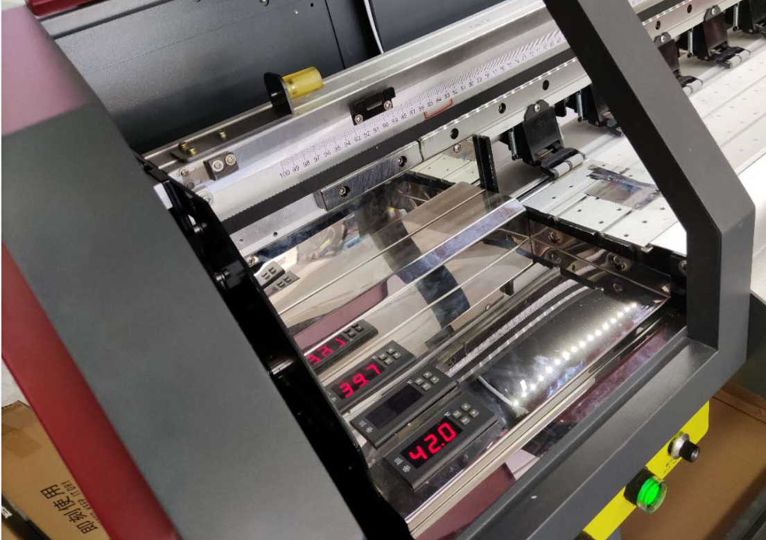 3. The machine will automatically sprinkle and shake the powder. There will also be a heating system to help the hot melt powder adhere to the white ink layer part better
