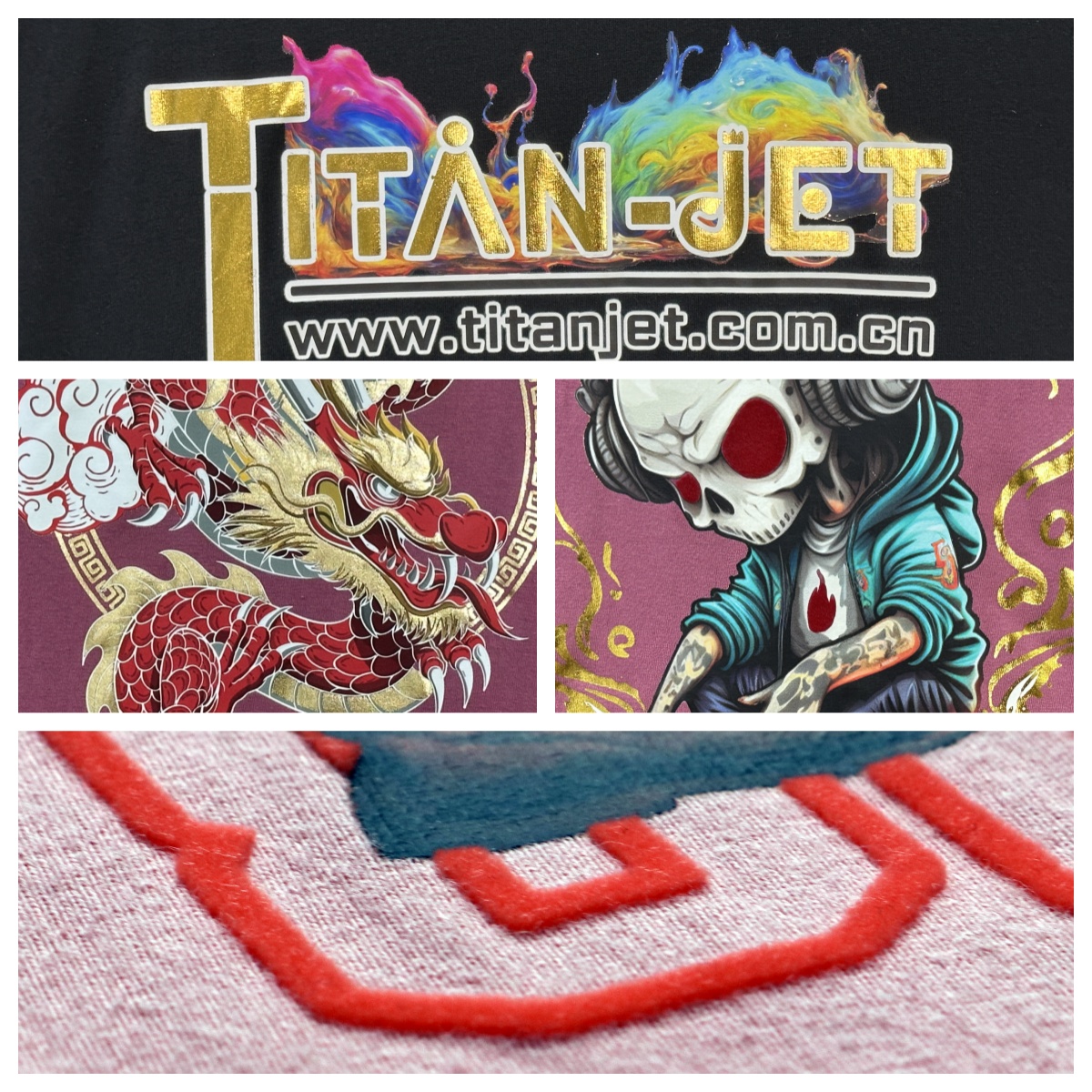 Colorful transfers, flocking enhancement, and foil stamping are completed simultaneously with a ?DTF printer?, eliminating traditional steps like engraving, alignment, and waste removal—?production cycle shortened by 80%?.