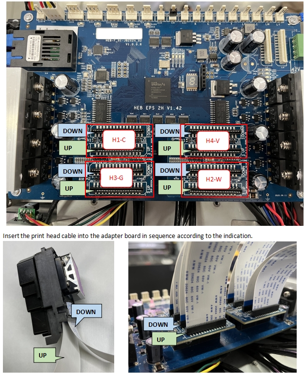 (Note: Plug and unplug the print head data cable must be operated with the power turned off.)