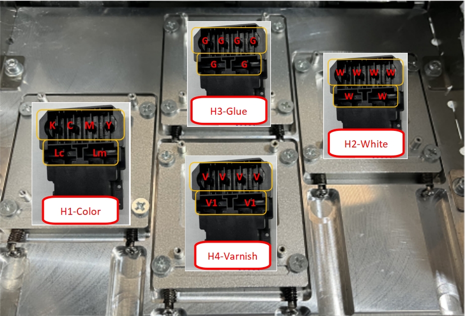 H1-C: color, H2-W: white, H3-G: glue, H4-V: varnish.
