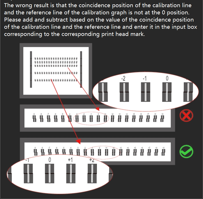 After all the above steps are completed, the calibration is complete, and the job file is printed again to check the final print effect. If the above calibration is completed, the lines are aligned, but the actual print job file, the pattern is still not aligned, it is recommended to repeat the above steps once. If it is the same, it is necessary to rule out whether the print head nozzle is abnormal, check the status of the print head nozzle, whether there is a deficiency or abnormal flying ink, if so, soak and clean the print head to see whether it is improved.