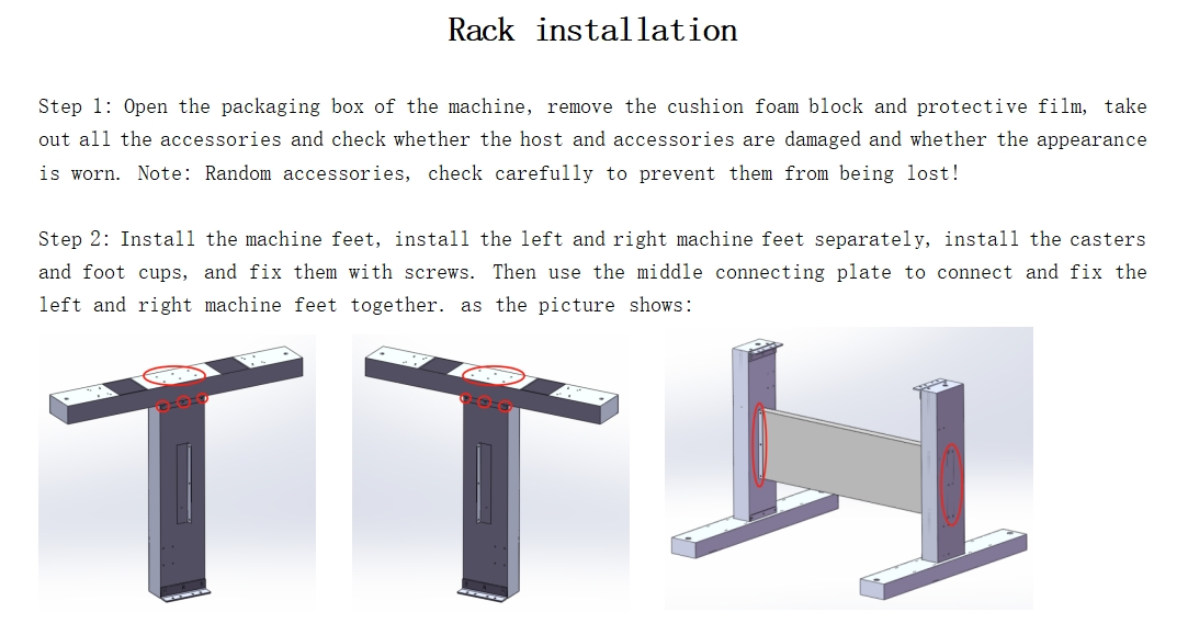 Install the foot according to the drawing or video, install the foot cup and wheel, and fix the printer.