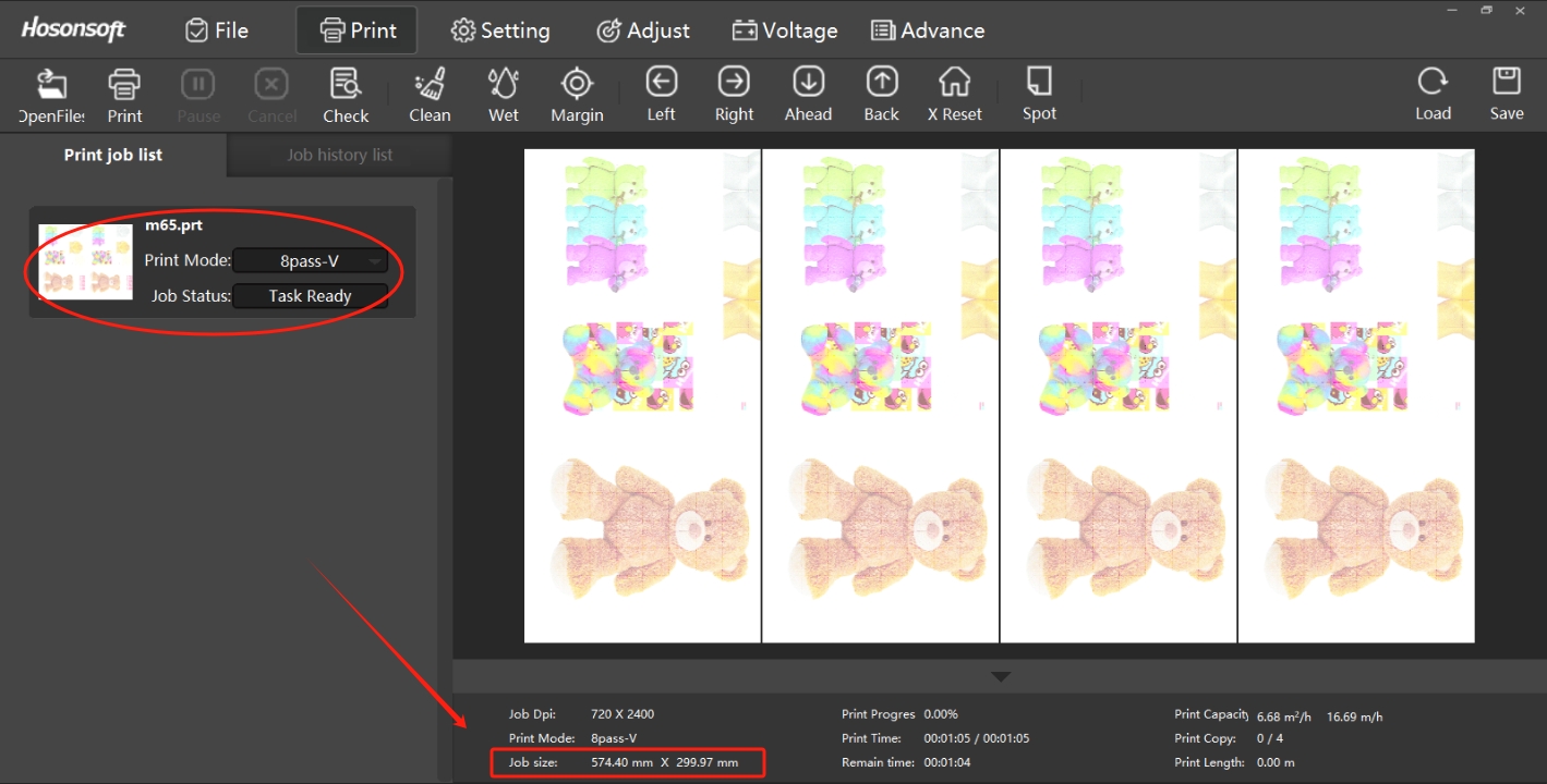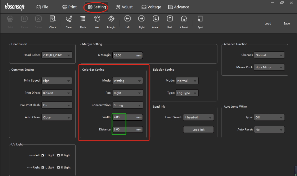 For instance, if the printing width of the machine is 60cm and the working width is also 60cm, but the printing margin value is set to 100mm, it is possible that the machine will not be able to print.