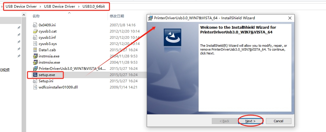 Before installing the USB device driver, do not connect the USB cable first. Then click on setup.exe to run it, and follow the prompts to complete the installation.