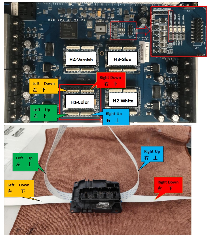 (Note: When plugging and unplugging the print head data cable, it must be operated when the power