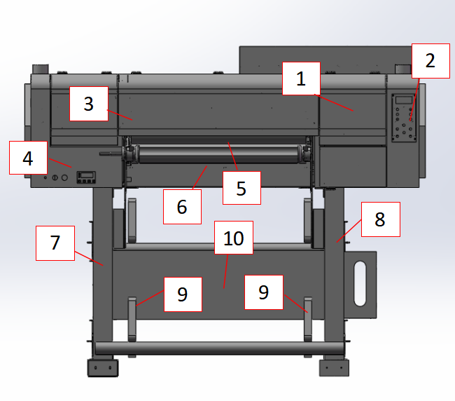Install the foot according to the drawing or video, install the foot cup and wheel, and fix the printer.