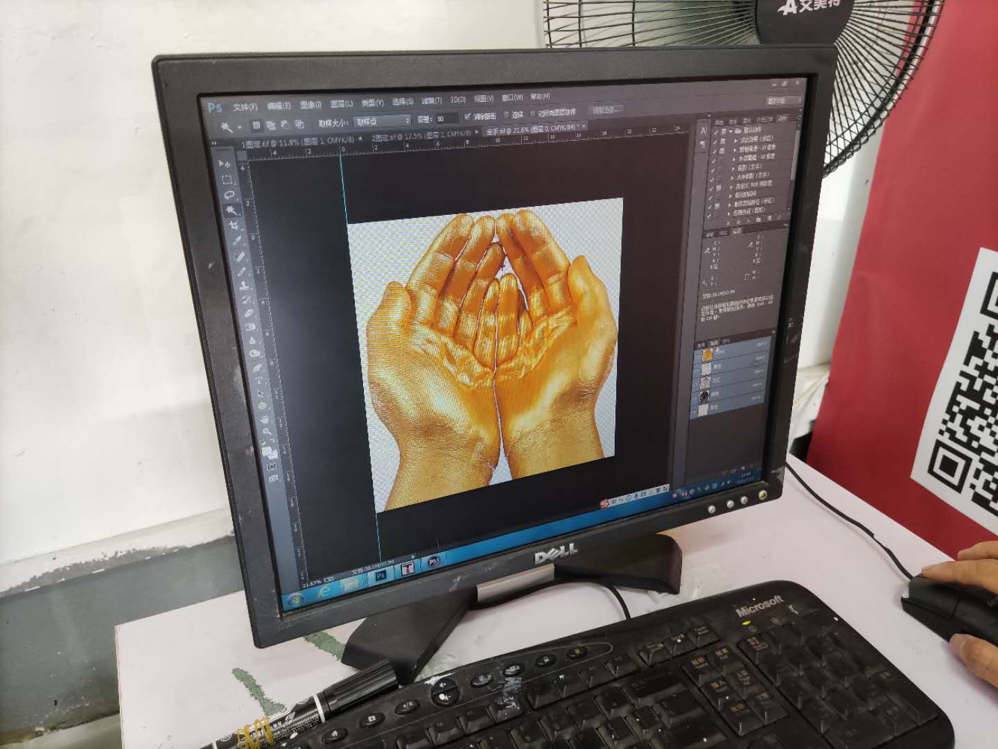 1、準備好要打印的圖案,使用PS軟件進行圖片的調色、修圖已經(jīng)摳圖處理,然后通過專色通道鋪白墨圖層,淺色部分白墨鋪厚,打印效果更好。