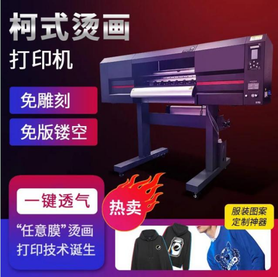泰拓?cái)?shù)碼二代柯式燙畫抖粉一體機(jī)60E3-K的任意膜技術(shù)就是為了實(shí)現(xiàn)這個(gè)想法而誕生,增加一個(gè)噴頭打涂層,燙金膜、燙銀膜、鐳射膜、傳統(tǒng)膜、離型紙、反光膜、彩虹膜等皆可打印,膜的成本降低一半!該項(xiàng)技術(shù)將給印花界帶來更大的發(fā)展機(jī)遇!