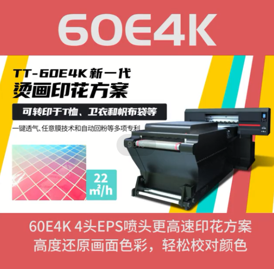 泰拓數(shù)碼2021全新升級的二代白墨燙畫印花機(jī)TT-60E4-K賦予了熒光油墨更廣泛的應(yīng)用,在傳統(tǒng)的C、M、Y、K四色基礎(chǔ)上,又增加了目前被廣泛運(yùn)用的熒光色,是打印出來的色彩更生動、更明亮,更好地滿足了運(yùn)動服裝行業(yè)及泳裝行業(yè)客戶對色彩表現(xiàn)力的需求。亮麗的熒光色,白彩同出,效果卓越!