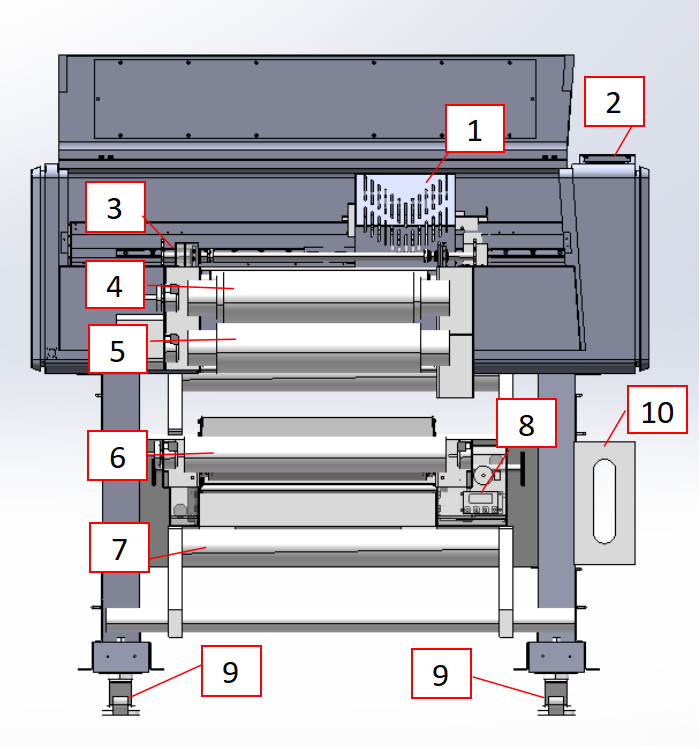 根據(jù)圖紙或視頻安裝腳座,安裝腳杯和輪子,固定打印機。