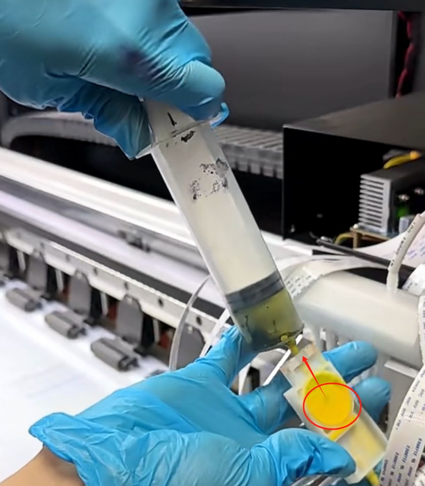 注意:檢查所有墨囊,如果墨囊沒(méi)有填滿墨水,把墨囊倒置過(guò)來(lái)使用注射器抽墨,
