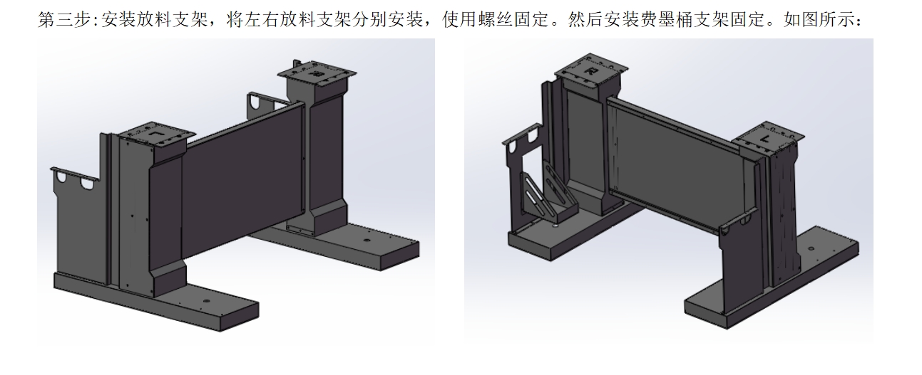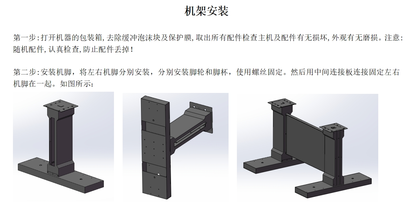 根據(jù)圖紙或視頻安裝腳座,安裝腳杯和輪子,固定打印機。