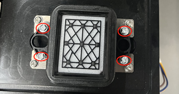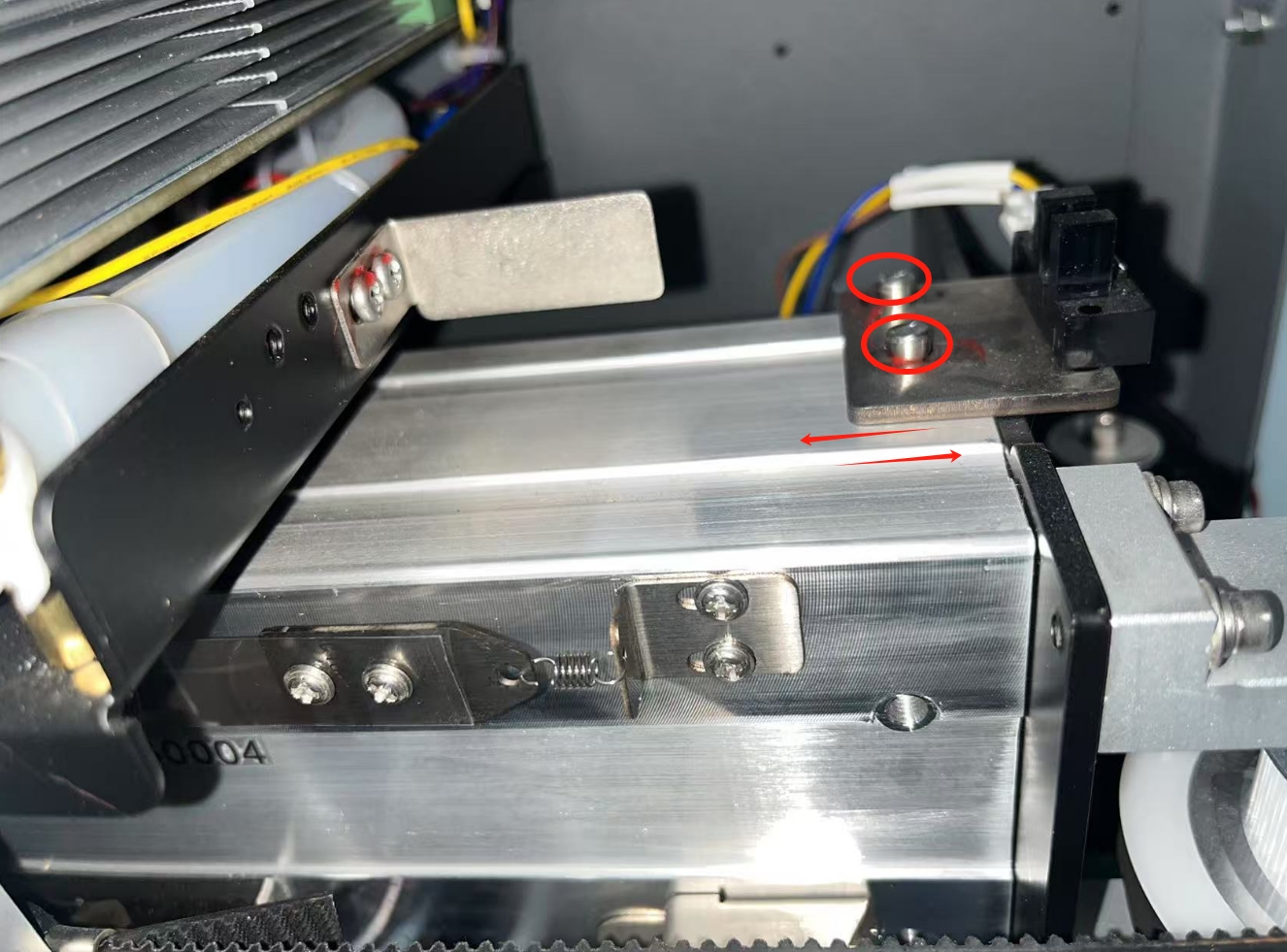 如果是其中一個(gè)打印頭和墨棧帽不居中對(duì)齊,松開(kāi)對(duì)應(yīng)的墨棧帽的固定螺絲,然后微調(diào)左右位置,