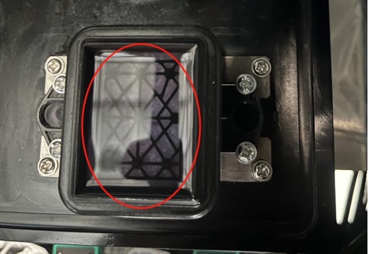 依然說(shuō)明打印頭與墨棧帽之間不密封,或者廢墨管連接松動(dòng)。再次重復(fù)檢查。