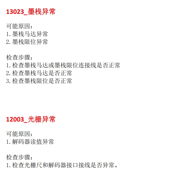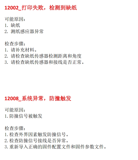 如有報錯信息,常見的故障代碼,解決方法如下: