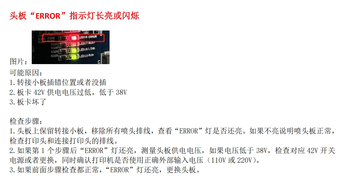 確認(rèn)頭板的“Error”指示燈閃爍時,詳細(xì)參考下面這個手冊排查異常: