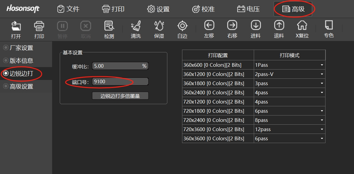 檢查打印軟件的高級窗口,邊銳邊打里面的端口設置,
