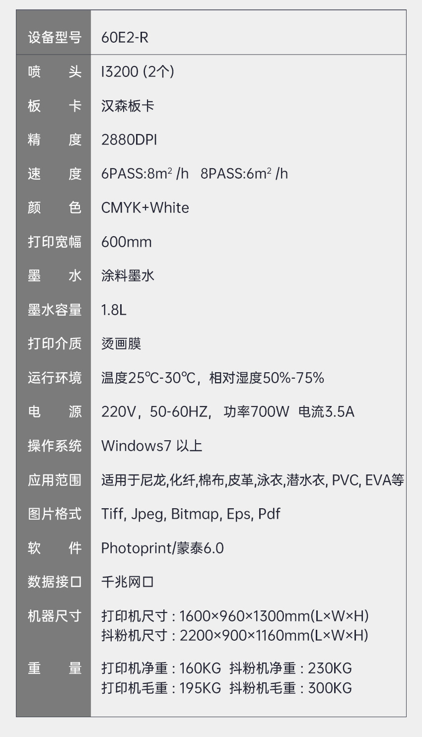 60E2-R 白墨燙畫打印機(jī)雙頭經(jīng)濟(jì)基礎(chǔ)款